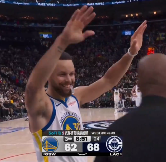 虎扑04月16日讯 NBA附加赛,快船对阵勇士的比赛正在进行中。