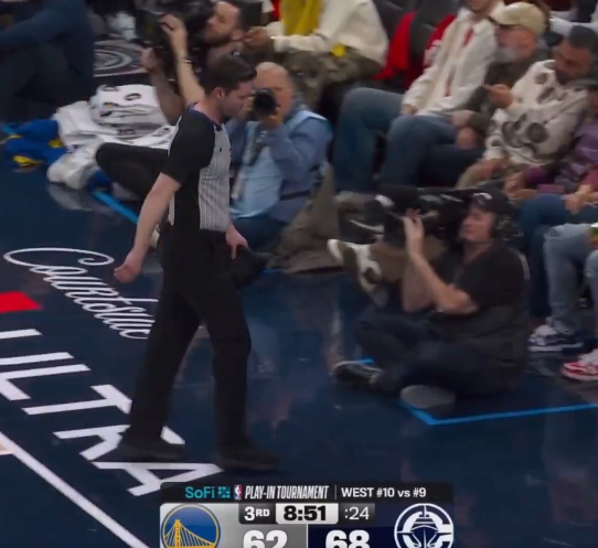 第三节比赛中,快船勇士裁判本-泰勒受伤离场,替补裁判肖恩-柯宾登场吹罚。